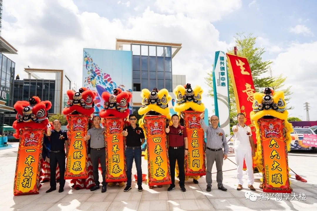 廣東瑞興醫(yī)藥股份有限公司董事長黃凌云先生與一眾嘉賓領導為【瑞興創(chuàng)享中心】開放典禮進行剪彩儀式,并在眾多賓客矚目下,6位領導上前為6只舞動的瑞獅點睛。